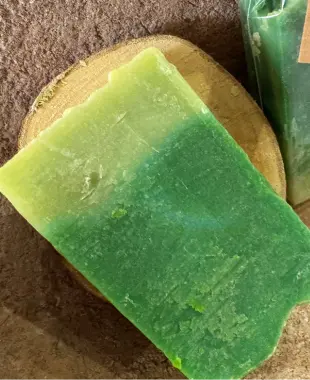 El jabón de té verde es una barra de jabón artesanal con té verde y aceites vegetales, concebida para limpiar con suavidad, combatir el exceso de grasa y aportar un efecto tonificante a la piel.